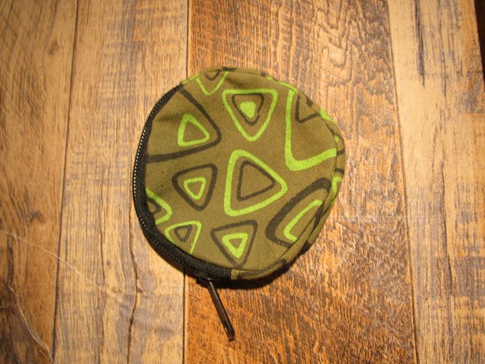 Porte-monnaie en tissu vert 100% coton à zippe style ethnique - Ø10 cm (P014) - photo numéro 1