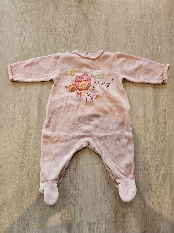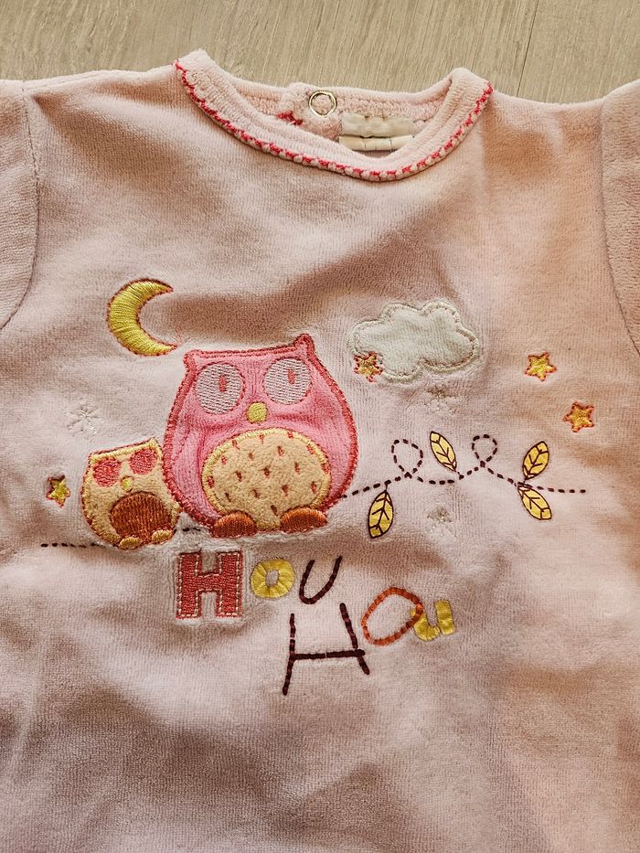 Pyjama motif chouettes. Toujours tout doux. Très bon état, juste un cm de couture qui a lâché (photo 4) Taille 3 mois