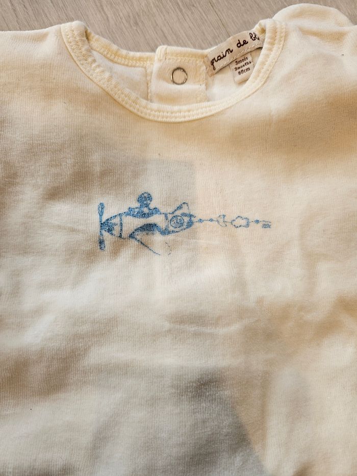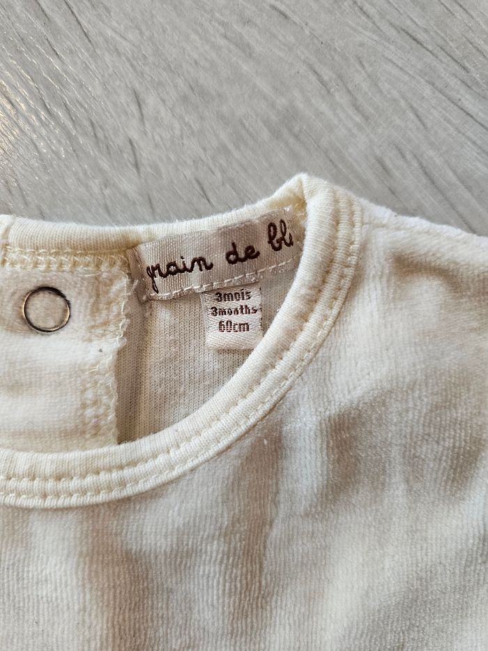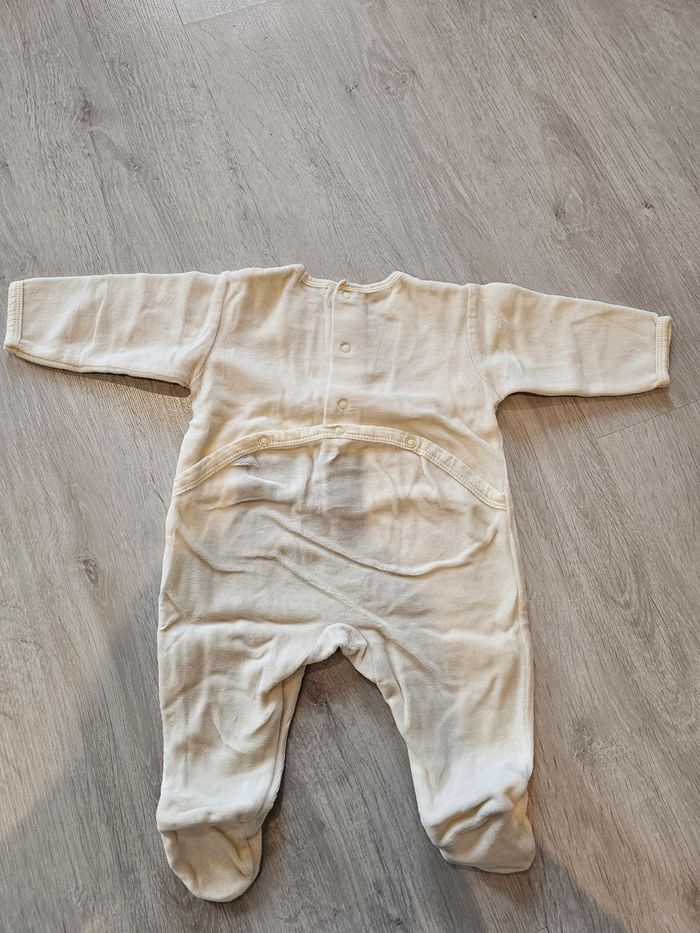 Pyjama "Grain de Blé" mixte Parfait état Taille 3 mois/60cms Le rendu de la couleur est difficile à prendre en photo car il s'agit d'un blanc cassé.