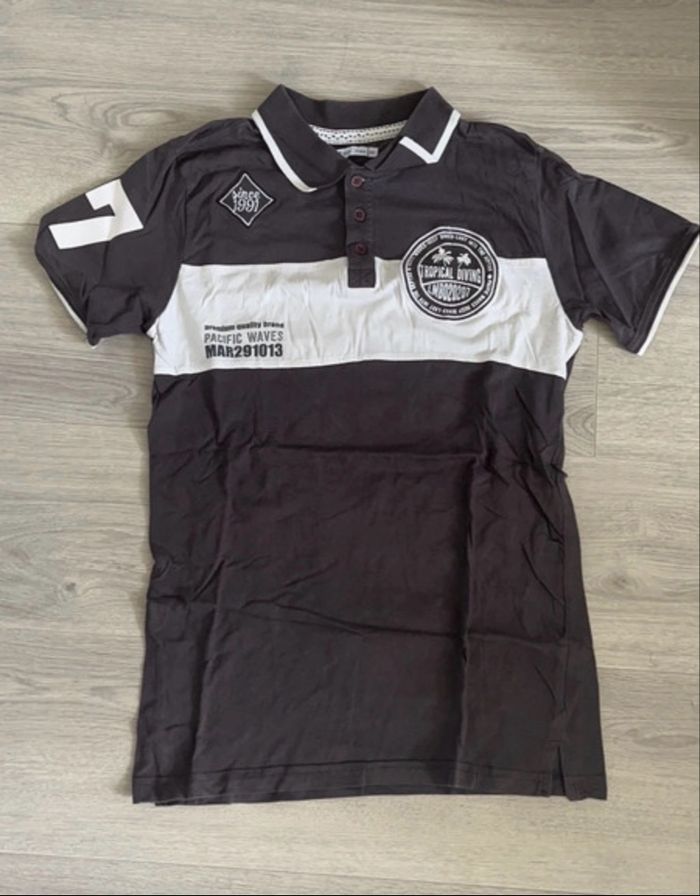 Polo gris foncé à motif blanc Taille 16 ans Très bon état