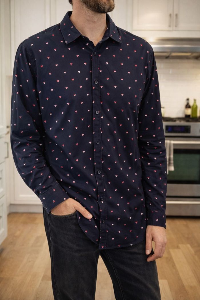 Chemise coupe ajustée pour Homme à motif bleu marine 100% Coton manche longue Taille XL (H130) - photo numéro 1