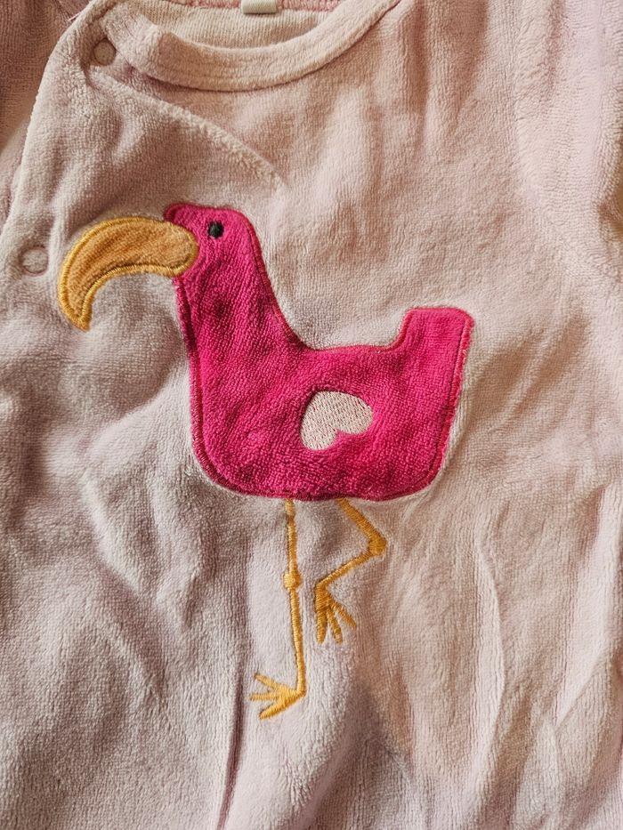 Pyjama flamant rose. Ouverture sur l'avant Taille 3 mois