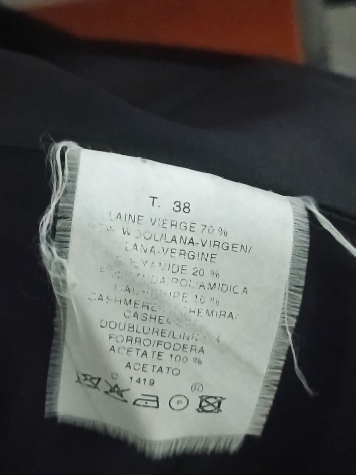 Manteau laine vierge 70% polyester 20% cachemire 10%