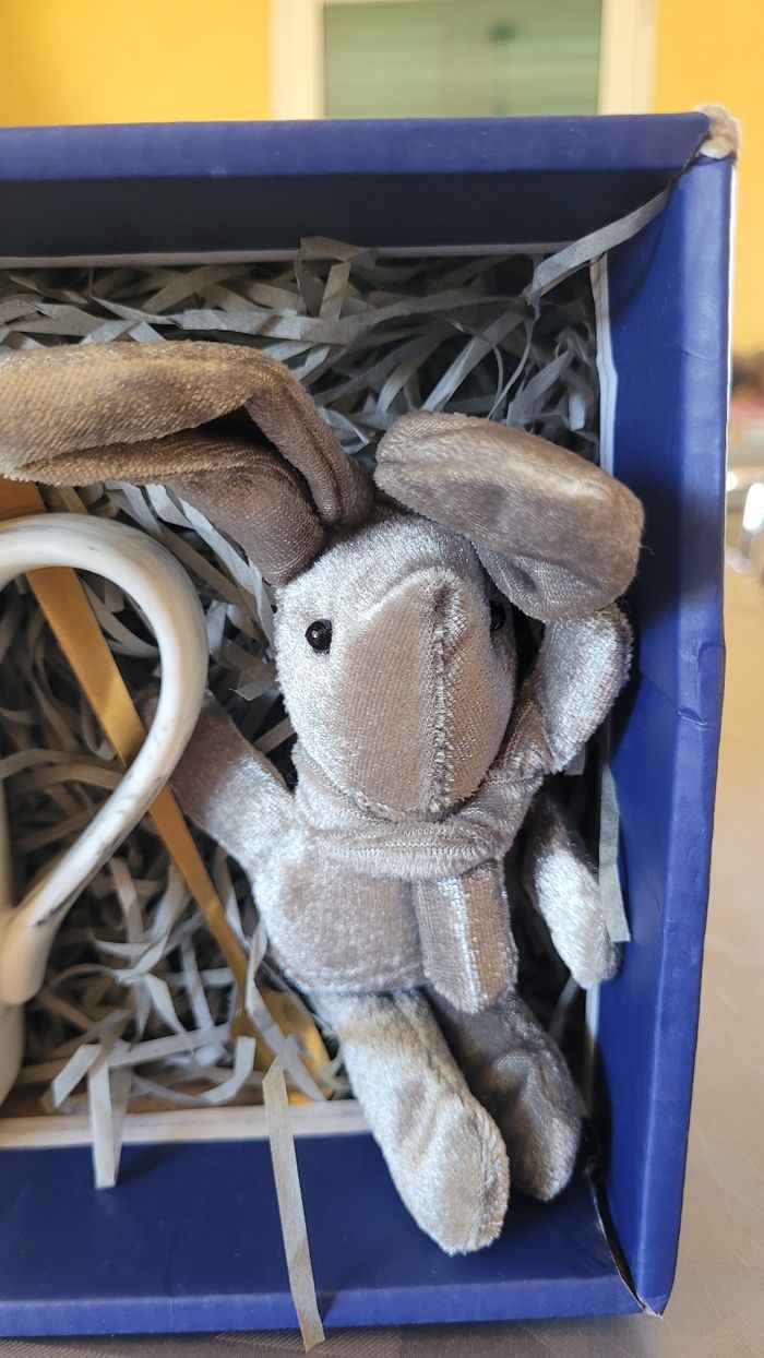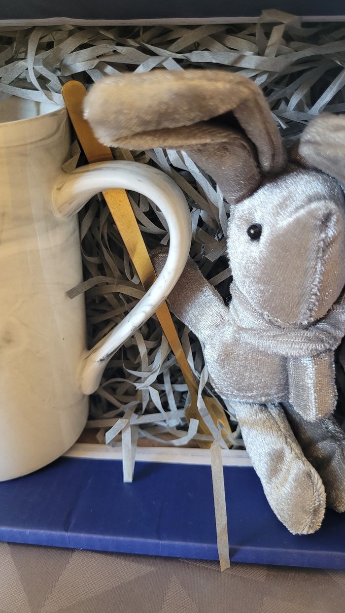 Coffet tasse, cuillère dorée et peluche lapin  - photo numéro 3