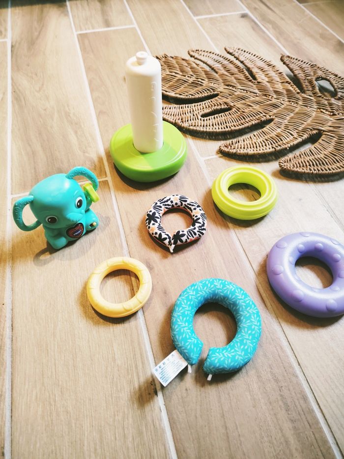 🐘Jeu d'éveil - Elephant interactif empilo formes sonore et lumineux - marque Vtech 🎀Convient dès l'âge de 6 mois 🎀Joli éléphant interactif à empiler de la marque VTech. Un jouet complet qui stimule les sens de bébé grâce à ses différentes textures et ses fonctions sonores. 🎀Apprentissage ludique : ✨L'enfant apprend les chiffres et les couleurs en empilant les anneaux sur la tige. 🎀Variété de textures : ✨Comprend des anneaux en plastique de différentes formes et deux anneaux en tissu tout doux (motifs feuillage et floral) pour l'éveil tactile. 🎀Interactif : ✨Le gros bouton cœur sur la poitrine de l'éléphant s'illumine et déclenche des chansons, des mélodies et des phrases amusantes. 🎀Développement : ✨Favorise la motricité fine et la coordination main-œil. 🎀Petit bonus : ✨Un petit anneau texturé jaune est accroché à l'oreille de l'éléphant pour être manipulé. ❇️N'hésitez pas à créer un lot pour économiser sur les frais de port❇️ Premier âge, Jouet bébé, Jouet d'activité, Jouet ludique, Jouet eveil, Mémorisation, Memoire, aptitude, motricité, jeu Adresse, Montessori, jeu bois, Jouet bois, Jouet vintage, Jeu adresse, jeu apprentissage, dextérité, jeu sensorielle, jeu educatif, activités et Jouet pour bébé, trier empiler, encastrer, jeux et jouets