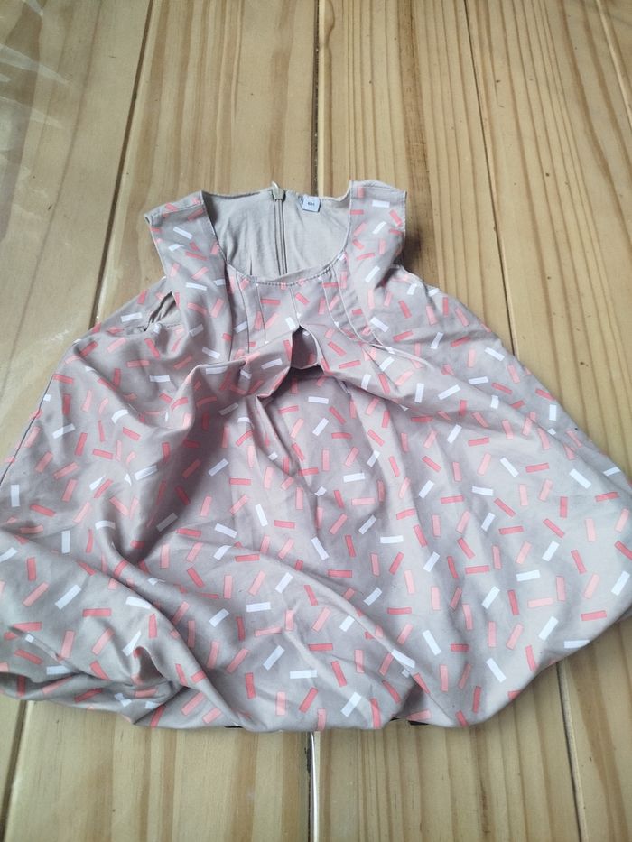 Robe beige avec motif rose et blanc sans marque taille 6 mois