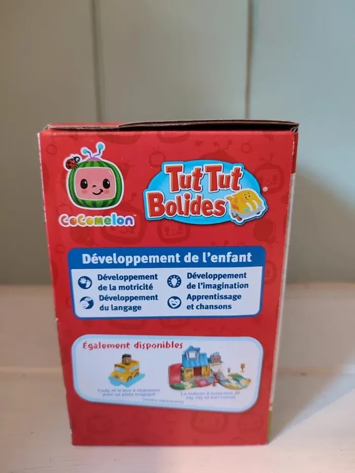 produit V-tech tuttut bolides neuf Les enfants font leurs premières découvertes avec les Tut Tut Bolides et les Véhicules Cocomelon ! Les personnages de la célèbre série YouTube s’allient aux Tut Tut Bolides pour créer de nouveaux véhicules ! Les Tut Tut Bolides sont d’adorables petites voitures interactives, parlantes, musicales et lumineuses qui participent à l'éveil de votre enfant, dès 18 mois. Fonctionne avec 2 piles LR03 fournies par véhicule.
