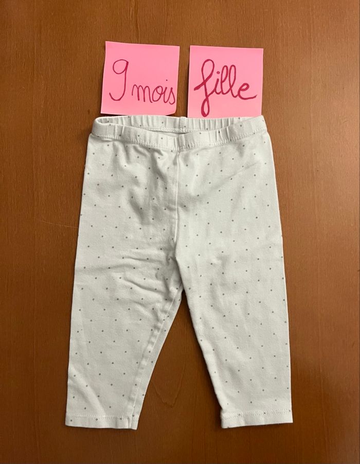 Bonjour, A vendre legging en taille 9 mois de la marque Obaïbi: 1€50 Il a été porté voir les photos. Mis sur d’autres groupes de vente Regardez dans mon dressing j’ai des vêtements garçon du 3 mois à 10 ans Et des vêtements fille de la naissance à 4 ans