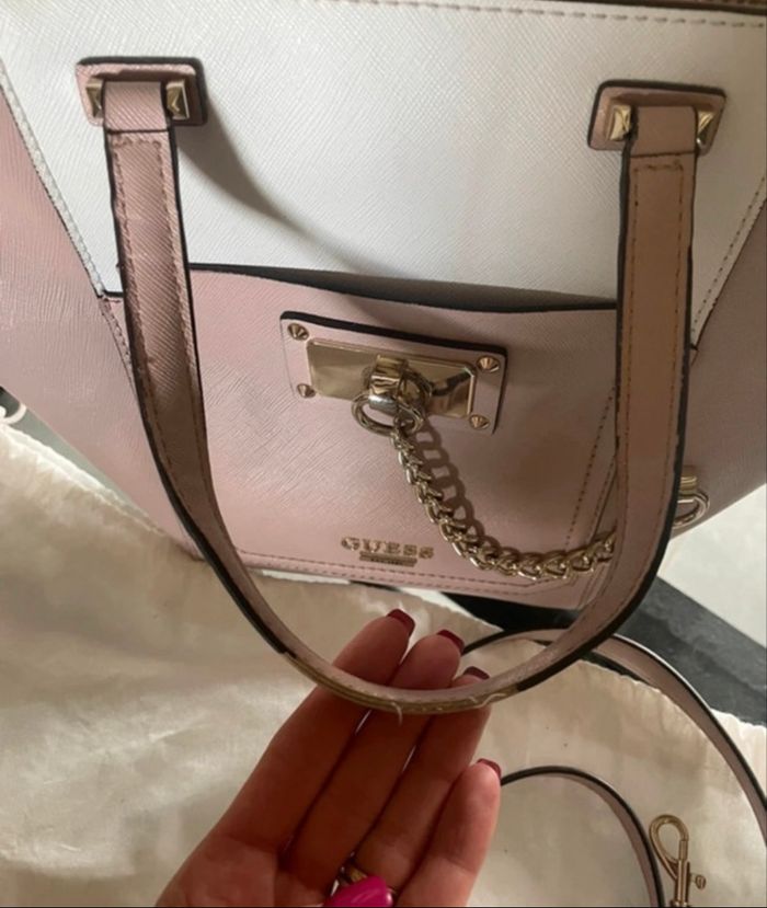 Sac Guess est très bon état général. Anses un peu abîmés voir photos Bandoulière neuve