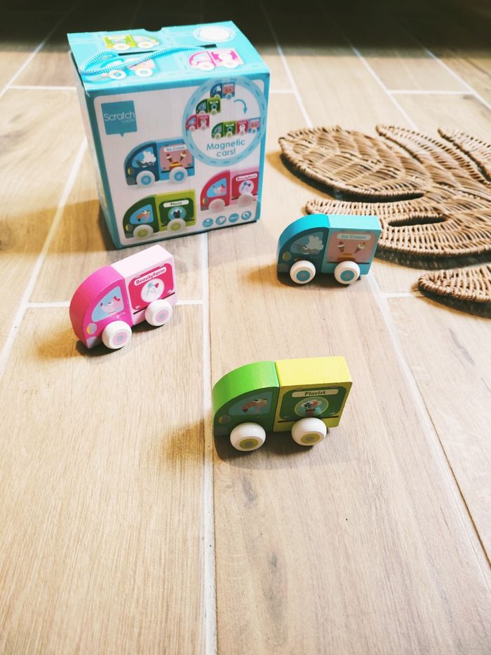 🚗Jeu d'éveil - Lot de voitures en bois magnétiques/ aimantées -marque Scratch  - photo numéro 1