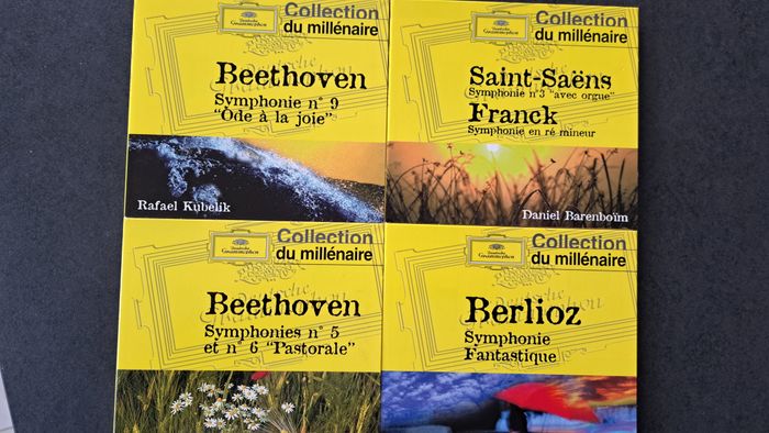 Lot de 4 CD de musique classique. collection du Millénaire. Deutsche Grammophon. Ils sont neufs Berlioz symphonie fantastique prix Fnac 41.37 euros Saint Saëns Symphonie N° 3 Francs Symphonie en ré mineur. Beethoven Symphonie N° 5 et 6 prix Fnac 11 euros Beethoven Symphonie N° 9 Prix Fnac 16 euros