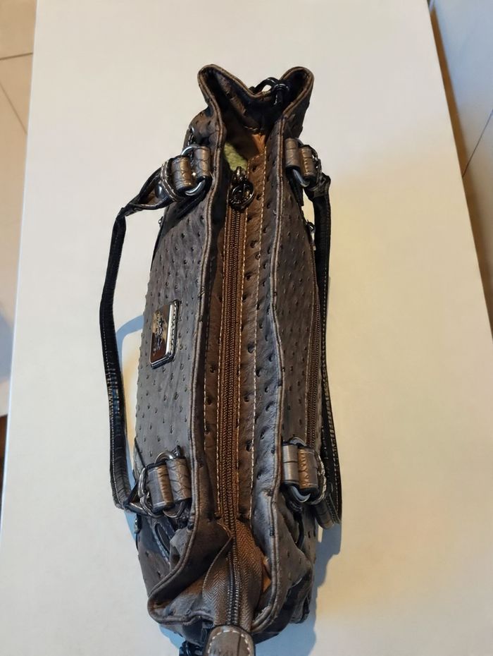 sac à mains de la marque Francinel en simili cuir d'autruche marron - photo numéro 2