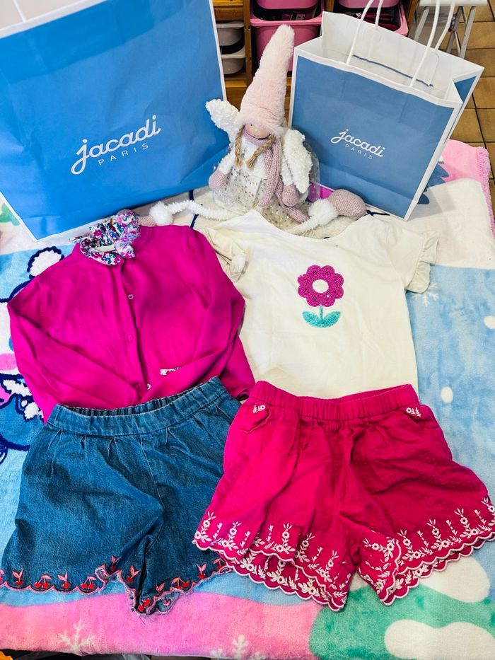 Gilet + haut taille 7 ans (petite tache sur le col du haut que je n'est pas essayé de détacher) Short taille 5 ans mais taille comme du 6 ans