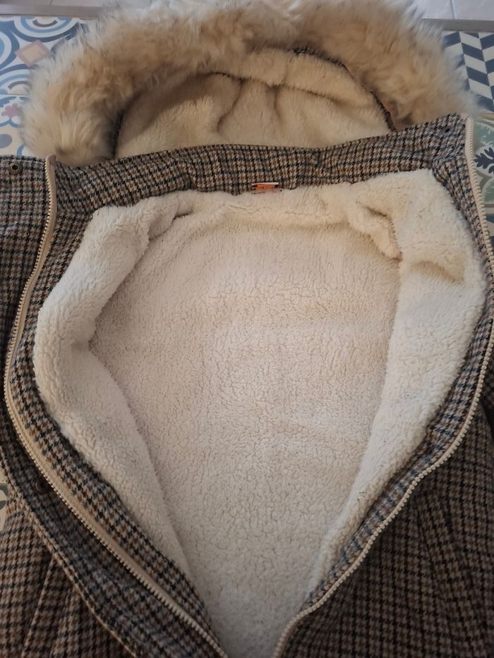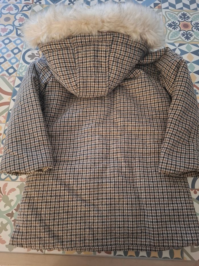 ° Manteau fille ° Taille 10 ans ° Très bon état ° Tape à l'œil, tao ° Imprimé pied de poule ° Tiens au chaud ° Fourrure capuche qui peut s'enlever