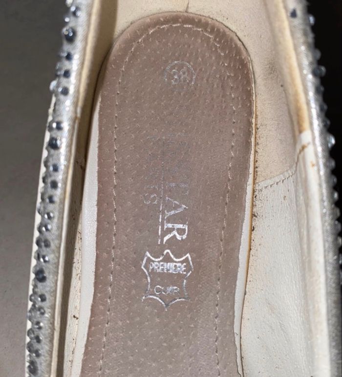 Escarpin compensé blanc et strass Taille 38 Bon état