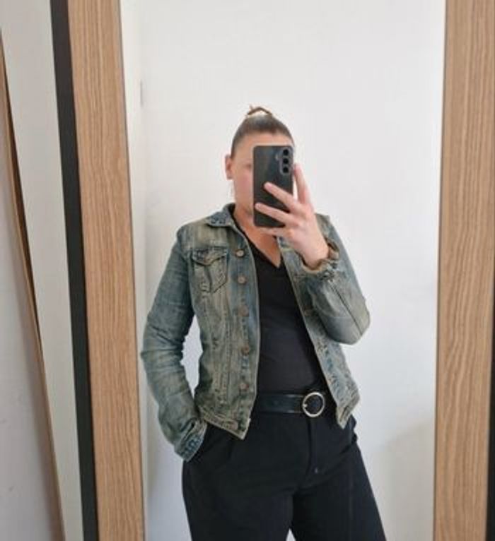 Je vends cette veste en jean à la coupe ajustée. Effet délavé authentique pour un look rétro/vintage super tendance. • Taille : M • Marque : Camaïeu • État : Bon état général. • Style : Indémodable, se marie avec tout (robes, pantalons noirs comme sur la photo). Envoi rapide et soigné ! 📦 #vesteenjean #jeanjacket #vintage #lookretro #tailleM #modetendance