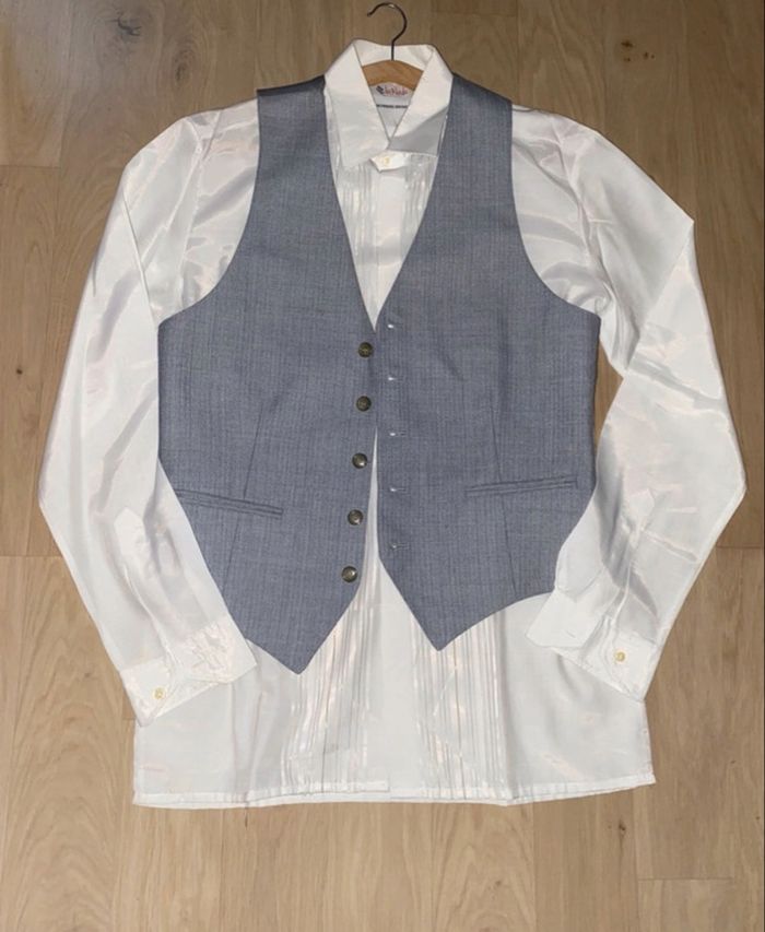 Ensemble de costume 4 pièces Veste chemise boléro pantalon Gris et blanc Taille 38/40 Très bon état