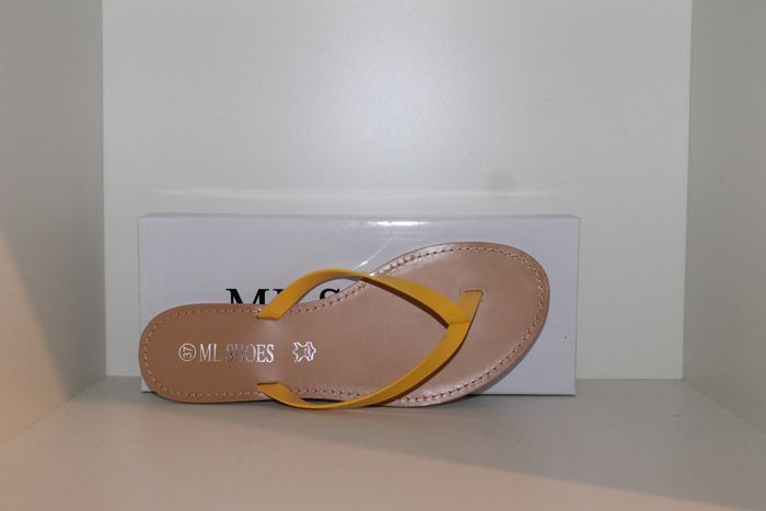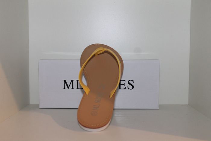 tongs lanières jaune pointure 37,neuves dans boites,idéal pour cet été. marque ml shoes réf 1116 n'hésitez pas à faire un lot ou une offre raisonnable. #tongs #plage #nus pieds