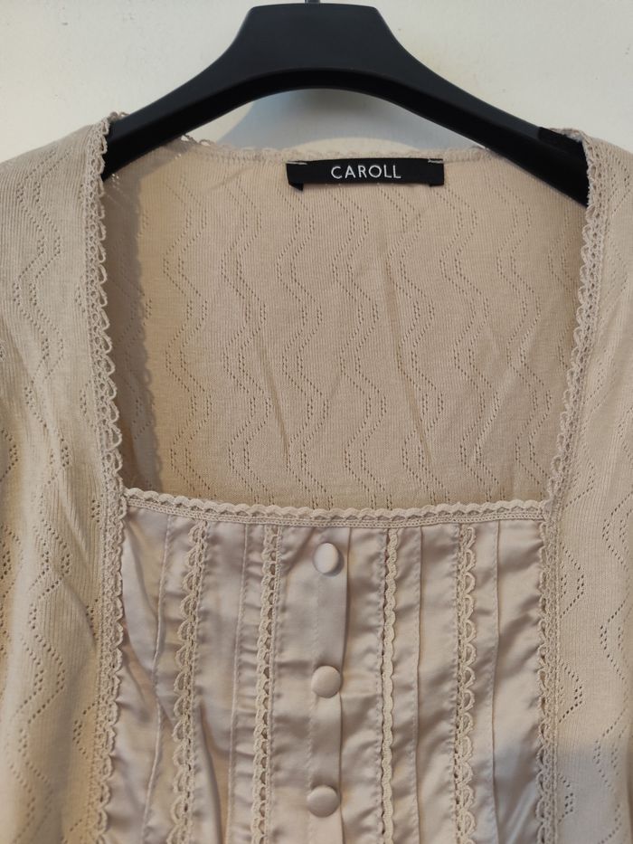 Blouse beige bi-matière taille 42 Caroll - photo numéro 5