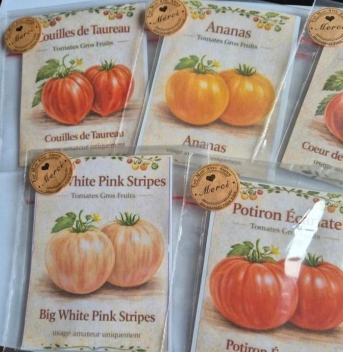 Semences potagères – usage amateur uniquement 👉 Collection exclusive de tomates gros fruits, idéale pour les passionnés de potager et de tomates anciennes. Cette sélection réunit 5 variétés réputées pour leurs fruits XXL, leur chair charnue et leurs saveurs authentiques. 🌟 Contenu de la collection 🍅 Cœur de Bœuf Géant 🍅 Couilles de Taureau 🍅 Big White Pink Stripes 🍅 Ananas 🍅 Potiron Écarlate 📦 8 graines par variété ➡️ 40 graines minimum autotal ✅ Pourquoi choisir cette collection ✔️ Tomates anciennes et gros fruits ✔️ Récoltes abondantes et spectaculaires ✔️ Saveurs intenses, idéales en salade ✔️ Variétés recherchées par les amateurs ✔️ Potager, serre ou jardin 🌱 Conseils de culture Semis : février à avril Exposition : plein soleil Repiquage après les gelées Récolte : été 📌 Conditionnement soigné Sachets individuels + cartes illustrées pour les conseils de semis 🗓️ Année de conditionnement : 2026 🎁 Idéal pour : jardiniers amateurs passionnés de tomates anciennes idée cadeau potager ⏳ Stock limité – collection premium 💬 N’hésite pas à me contacter pour toute question #tomates #tomatesanciennes #grosfruits #graines #semences #potager #jardinage #tomatecoeurdeboeuf #tomatesrare #jardinamateur