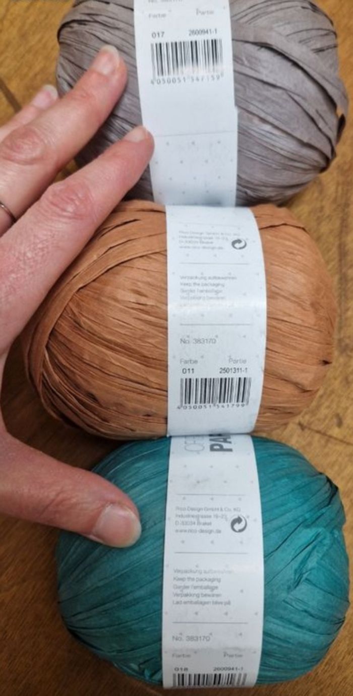 Pelotes non entamées. Crochet 6. 100% fibre papetière.