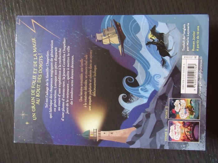Livre La Maison Chapelier Livre 1 Tamzin Merchant neuf ISBN 9782075157346 + don journal d'un dégonflé 9 un looong voyage Une héroïne irrésistible, une famille à la créativité débridée, un couvre-chef volé: une enquête palpitante et colorée dans un univers délicieusement loufoque. Un grain de folie et de la magie au bout des doigts ! Tel est l'adage de la famille Chapelier, qui fabrique des chapeaux magiques de génération en génération. Lorsque son père disparaît au cours d'une expédition à la recherche d'une plume d'oiseau rare, la jeune Cordelia Chapelier jure de le retrouver... quitte à mettre la ville de Londres sens dessus dessous.