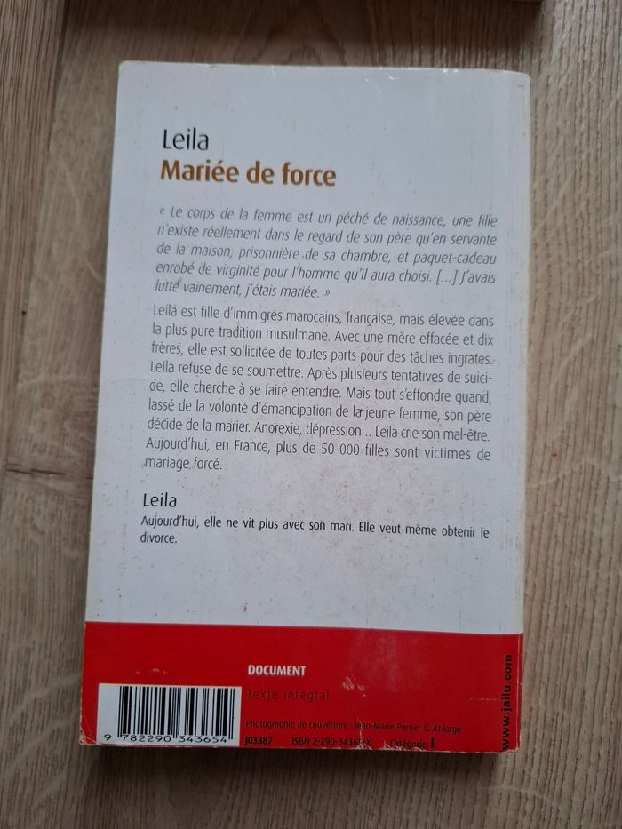 Lot de 4 témoignages en bon état - Fatima Esclave à 11 ans, Éditions Flammarion - Irène Frain Un crime sans importance, Éditions Seuil - Leila Mariée de force, Éditions J'ai lu - France Roche Péché mortel, Éditions Lattès Ces témoignages/récits sont bouleversants, émouvants,.. Possibilité d'acheter à l'unité à 1.50 euro pièce