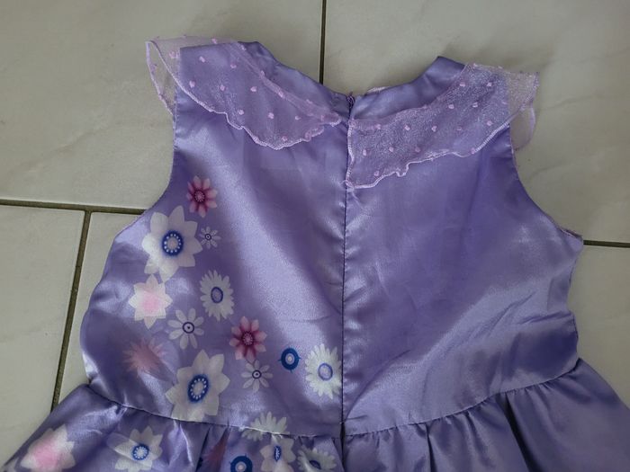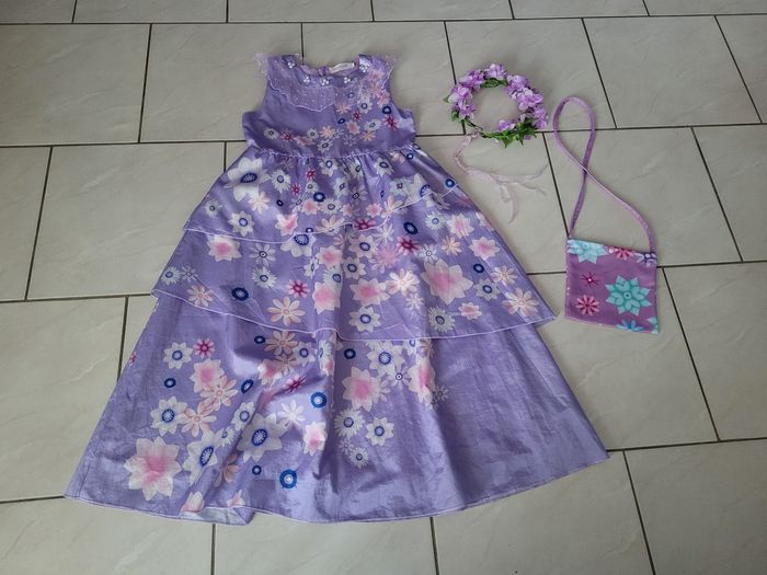 Vend déguisement fille, robe d'Isabella dans le film Disney Encanto, taille 150cm soit 10/12 ans en très bon état juste des signes d'usures (voir photos). Ensemble comprenant une robe avec sa couronne de fleurs et son sac. Vendu tel que sur la publication.