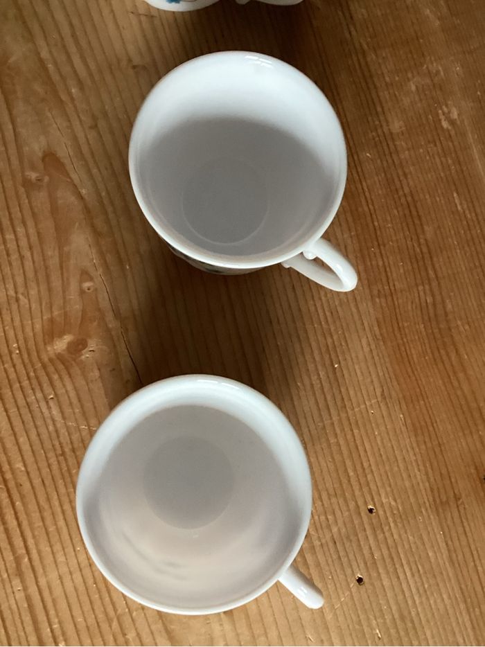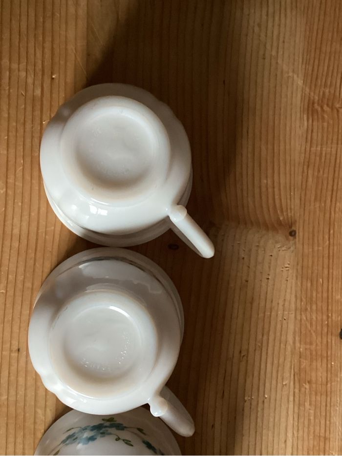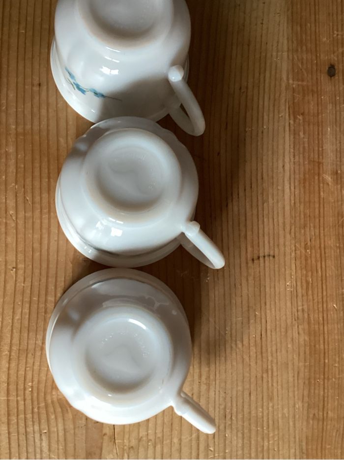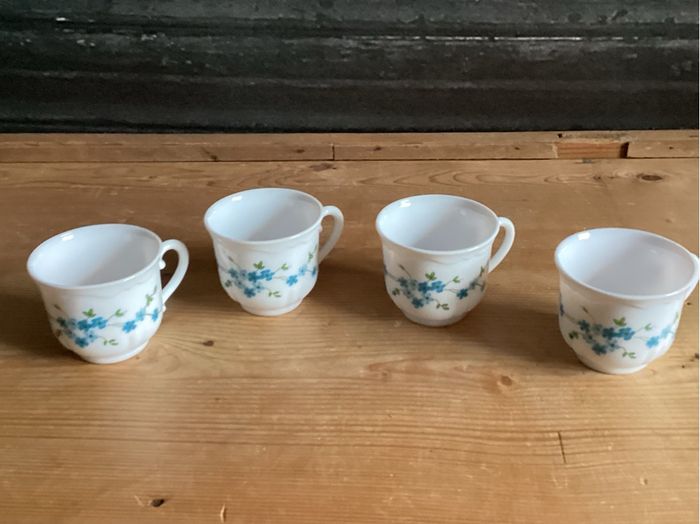 4 Tasses à café motif myosotis Arcopal Traces d’usure d’usage Prix négociable réduction en achat par lot