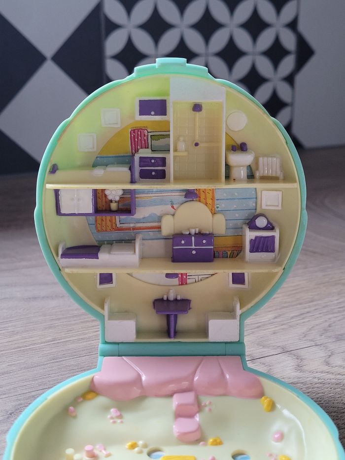 30% de réduction en l'achetant sur Beebs avec le code promo CHOCOLAT30. Polly pocket beach house de 1989 Avec la figurine d'origine qui tient très bien debout Excellent état, aucune décoration. La boîte ferme parfaitement. Envoi soigné 😊