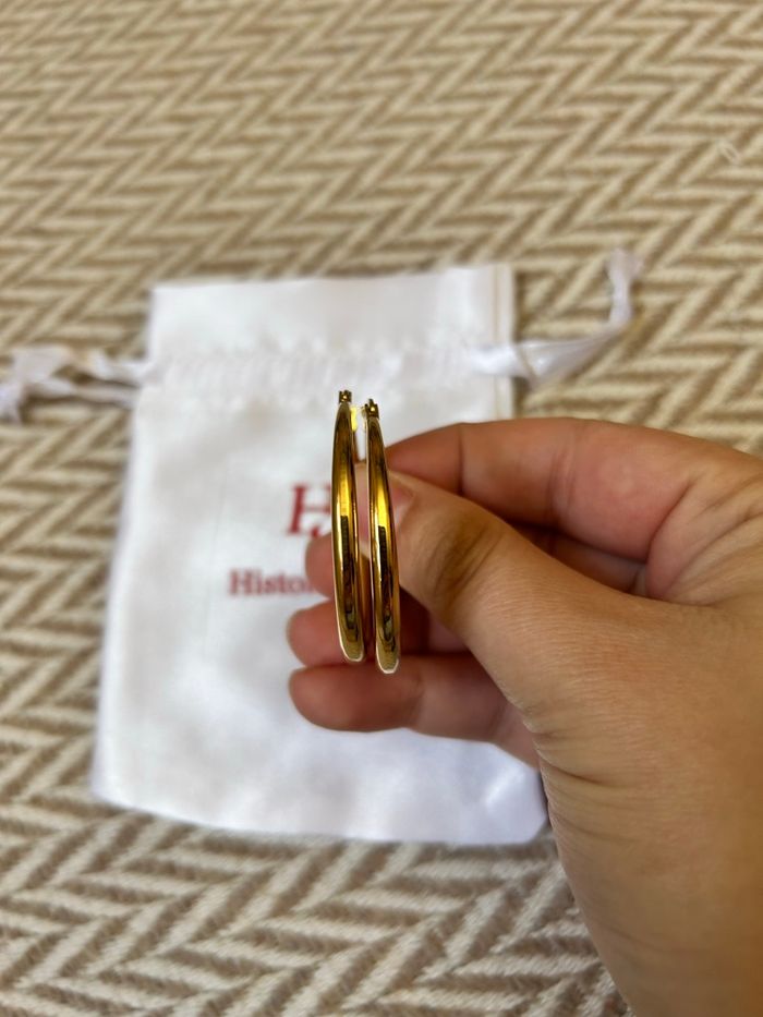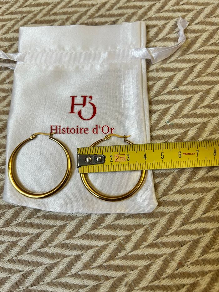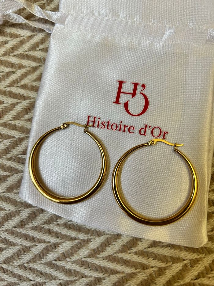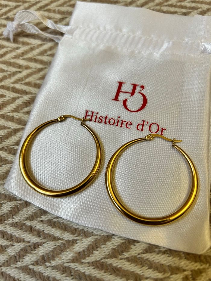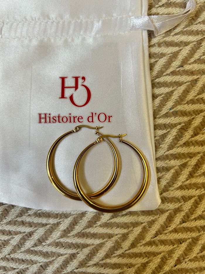 Boucles d’oreilles raffinées et retro dans un style féminin. Modèle discret et sophistiqué, parfait pour une occasion spéciale ou pour ajouter une touche chic à une tenue du quotidien. En acier inoxydable et plaqué or. Résiste à l’eau, au temps et ne s’oxydent pas. Marque : Histoire d’Or Dimensions indiqué en photo. En excellent état. Fournis avec l’étui. Idéal comme idée de cadeau. 🎁 Veuillez consulter mes autres articles, je fais un grand tri