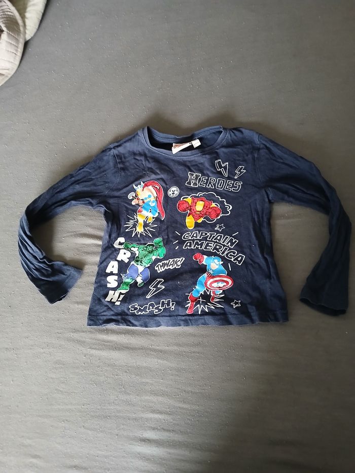 T shirt garçon - Taille 5 ans 🔹 État : Très bon état, porté quelques fois seulement. 🔹 Couleur : Bleu marine, 🔹 Marque : marvel 📦 Envoi rapide et soigné