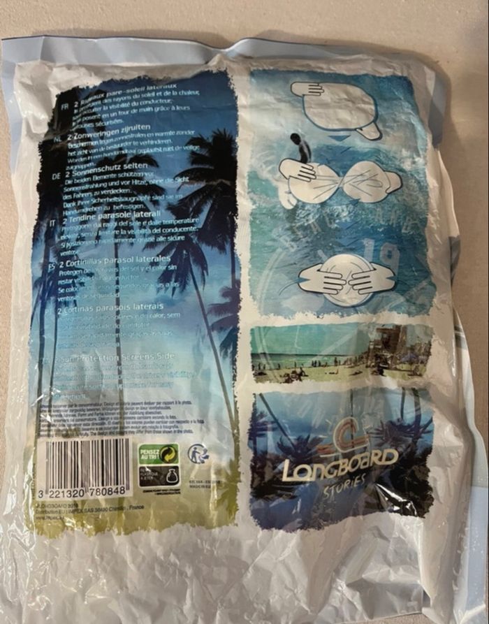Longboard 2 pare-soleil motif palmier et surt dimensions longueur 65cm et largeur 38 cm Neuf dans leur emballage