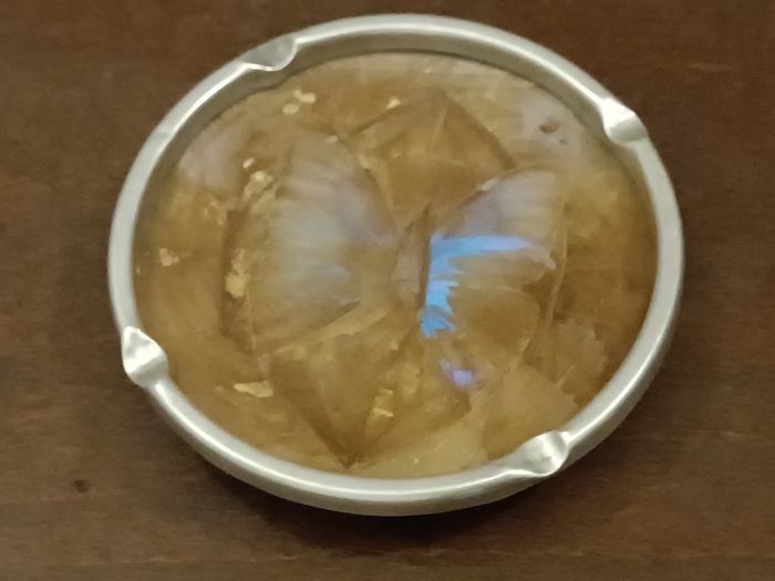 Vide poche ou cendrier en métal au fond un papillon diamètre 12 cm Bon état cf photos