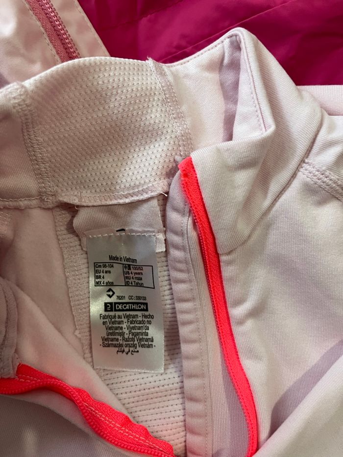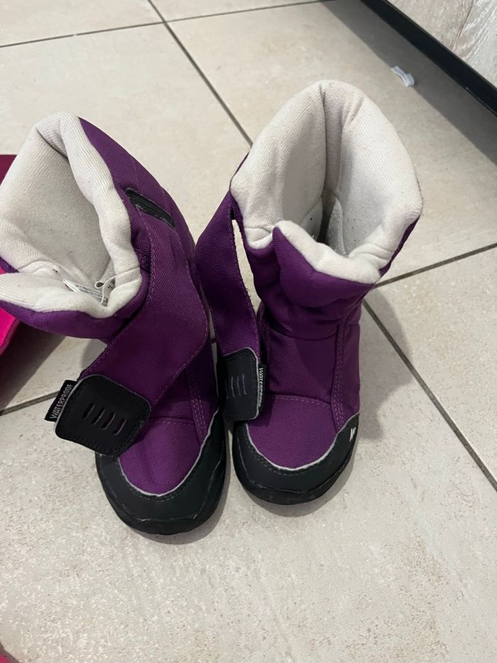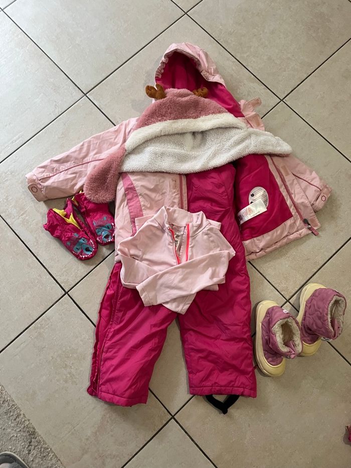 2 Lots avec une veste/ un pantalon combi/ un haut thermique/ un bonnet écharpe/ une paire de moufle/ une paire de botte de neige Les vestes et pantalons sont en 3 ans TBE Les bottes : les roses en 26-27 jaunit par le lavage bon état / les violettes en 26 TBE Les moufles taille 3 ans TBE Les hauts taille 4ans TBE Les bonnets taille 3-4 ans Prix 1 lot 20€ Prix 2 lots 38€