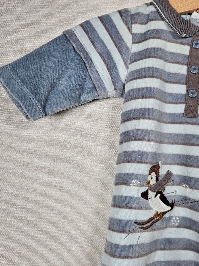 Hello ! 👋 Je te propose cette pièce de la marque Sergent Major, une super trouvaille pour ton dressing ! pour le dressing de bébé 👶 Magnifique pyjama en velours rayé esprit polo avec une adorable broderie pingouin skieur. Informations utiles: * 👕 Article : Pyjama dors-bien en velours à col polo et ouverture dos * 📏 Taille : 3 mois (60 cm) * 🌈 Couleur : Rayé gris-bleu et blanc * 🧵 Matière : Étiquette manquante (aspect velours doux) * ✨ État : ⭐⭐⭐⭐ Les petits + : 🏡 Logement non fumeur et sans animaux. 📦 Envoi rapide et soigné. N'hésite pas si tu as la moindre question ou si tu veux d'autres photos ! Je suis là. 😉 #sergentmajor #3mois #60cm #pyjamabebe #pingouin #hiver #neige #velours #raye #dorsbien