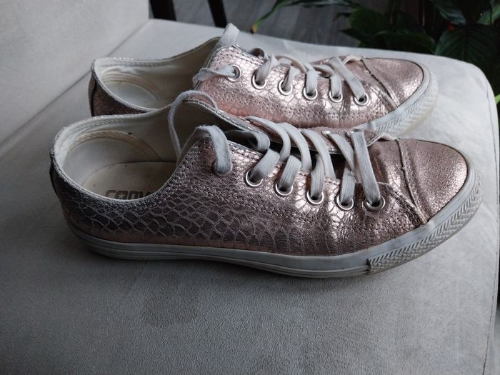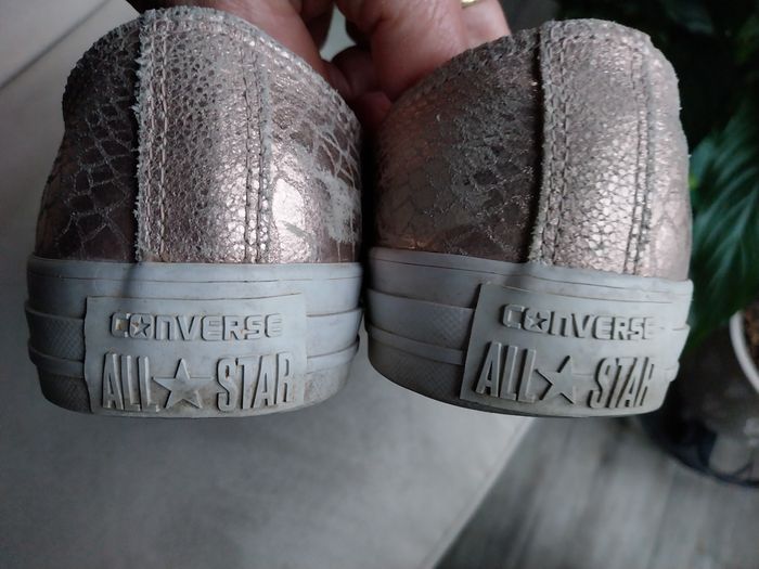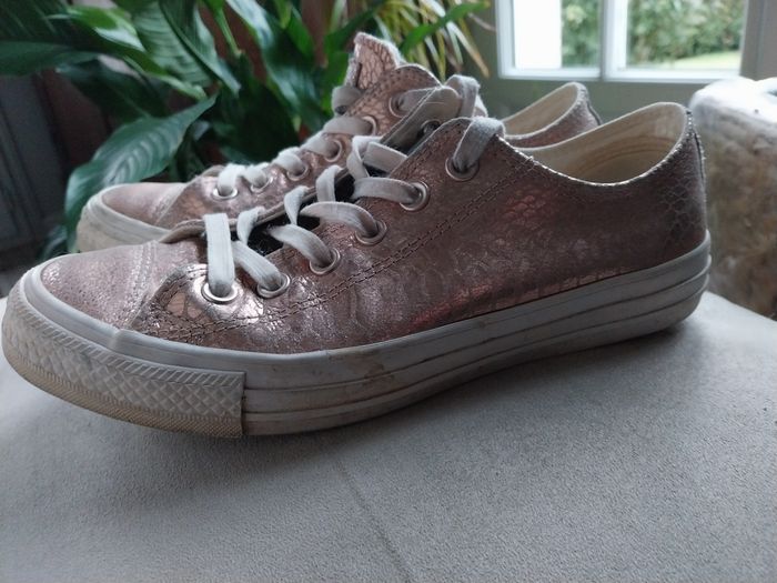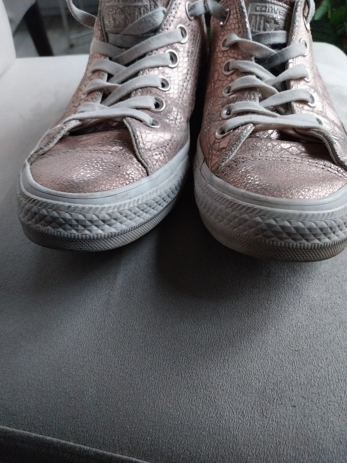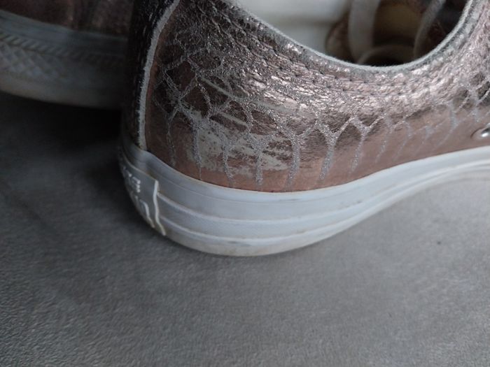 Couleur rose métallisé effet serpent Un peu abîmées à l'intérieur du pied donc ne se voit pas ( voir photos)