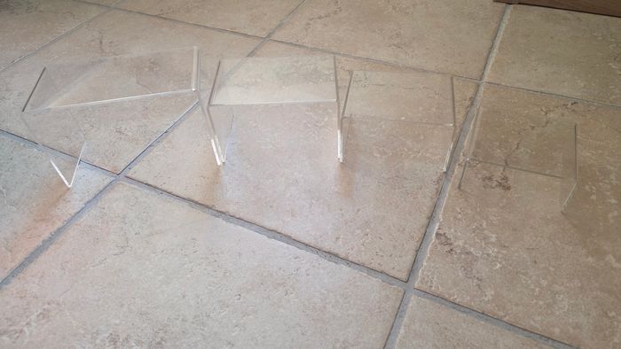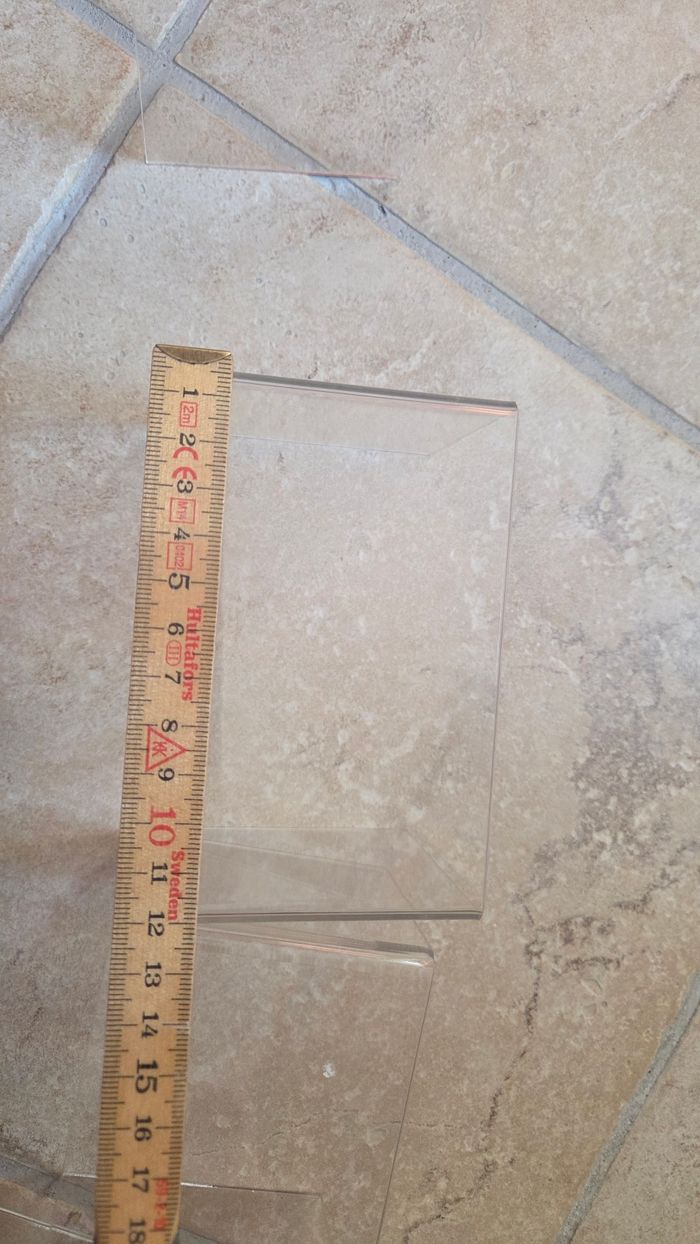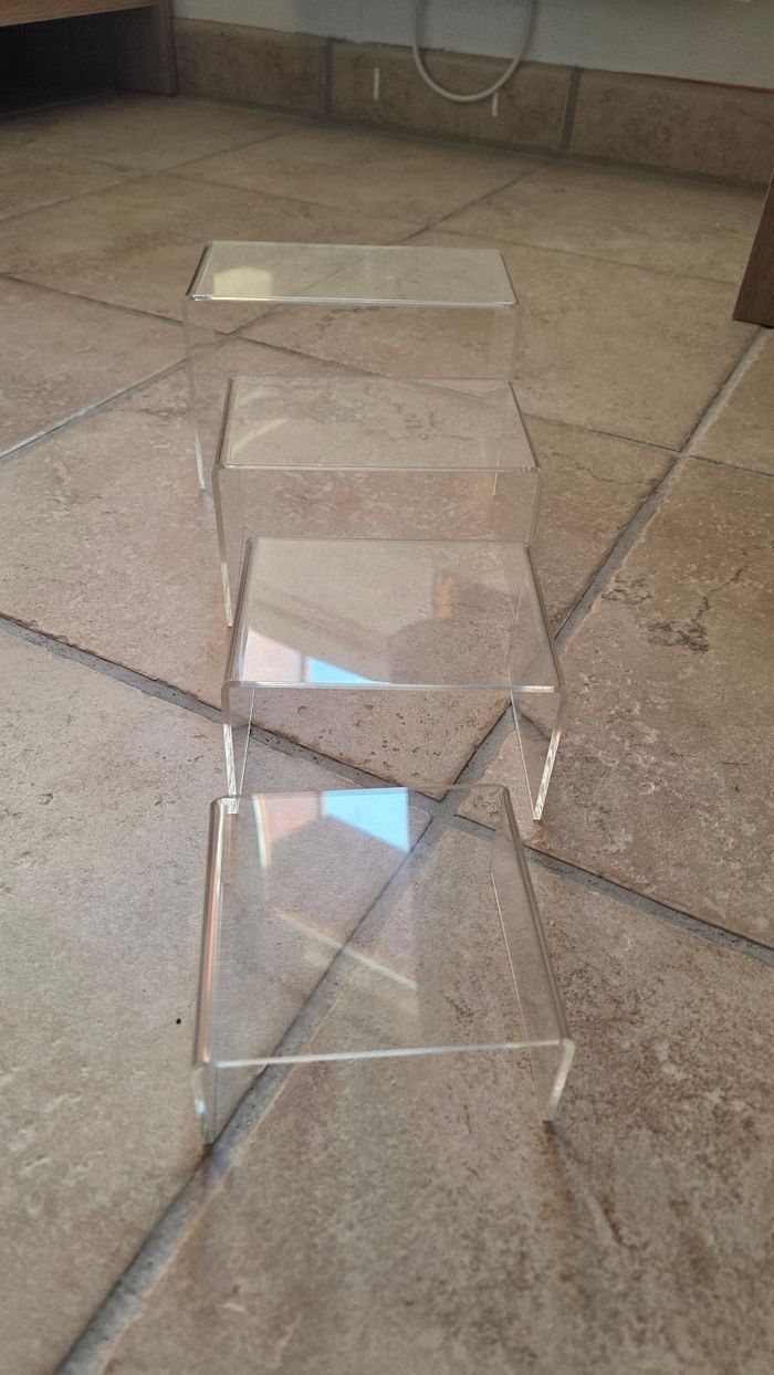 5 presentoirs en plastique transparent. Les tailles en photos. Ils passent les un sous les autres