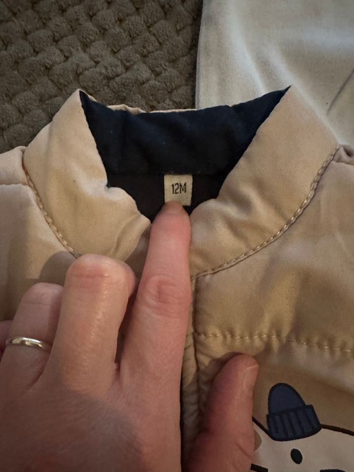 Lot vêtements bébé garçon composé de : - 1 polo manche longue marron et blanc -> 6 mois TBE - 1 gilet sans manche -> 6 mois TBE - 1 jogging -> 6mois TBE - 1 jean -> 9 mois TBE - 1 gilet cache cœur -> 9 mois TBE - 1 polo manche longue vert marron -> 9 mois TBE - 1 pyjama léger véhicule -> 6/9 mois BE (un petit trou recousu en haut voir dernière photo) - 1 pyjama moto -> 6/12 mois, correspond plutôt à 9/12 mois TBE - 1 manteau chaud, amovible sans manche et sans capuche -> 9 mois TBE (sauf le petit bout de la fermeture qui a cassé mais reste utilisable car assez long) - 1 bonnet léger -> 6 mois - 1 gavroche -> 9 mois - 1 doudoune sans manche -> petit 12 mois TBE Multimarques