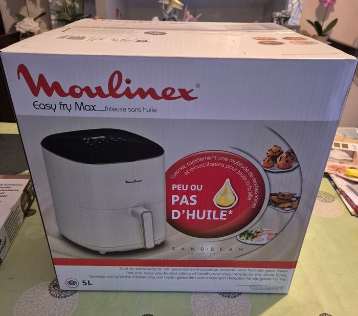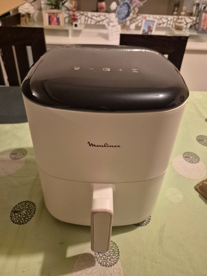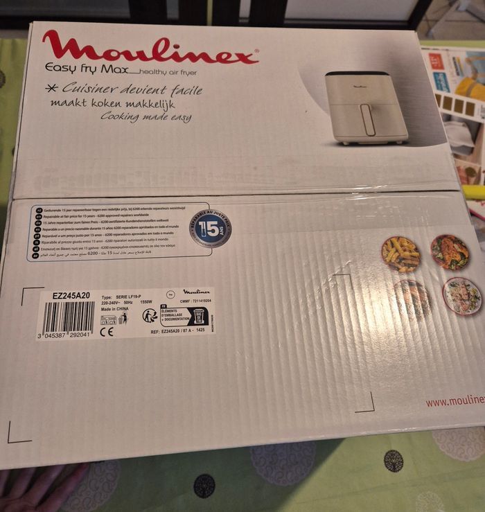 Easy Fry Max EZ245A20 Air fryer MOULINEX-10 programmes - 5L. 1500W. Utilisée que 2 fois. Garantie jusqu'au 29/11/2027. Fourni avec une boîte neuve de papier carré 20 x 20 pour airfryer pour ne pas salir le tiroir.