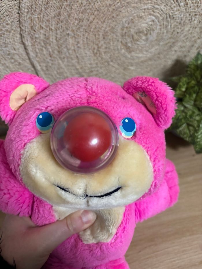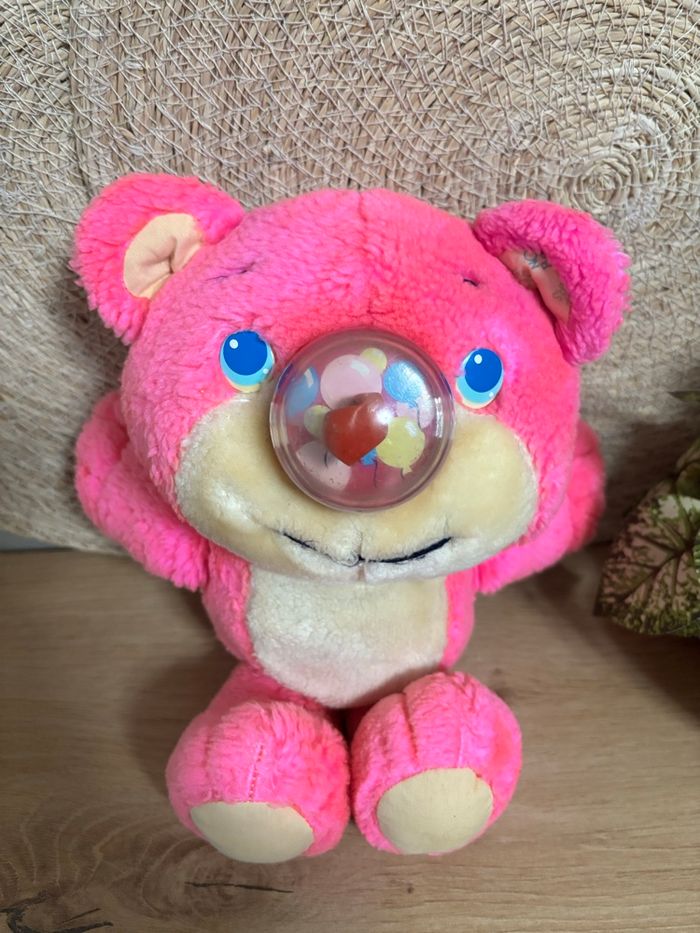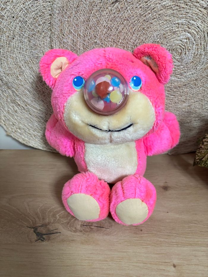 Vintage Bel etat vu son âge 29 cm Quand on appuie sur le ventre le ballon dans le nez se gonfle Envoi rapide #vintageoursrosenosybearshasbro #pelucheoursroseballonnosybears
