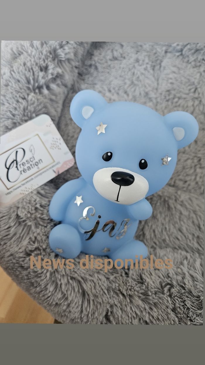 Petite veilleuse ourson Blanche, bleu ou rose Personnalisé sur mesure avec prénom, date ou petit dessin