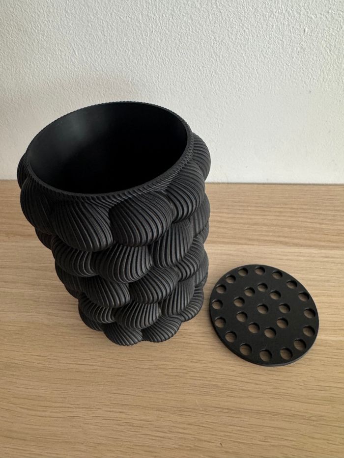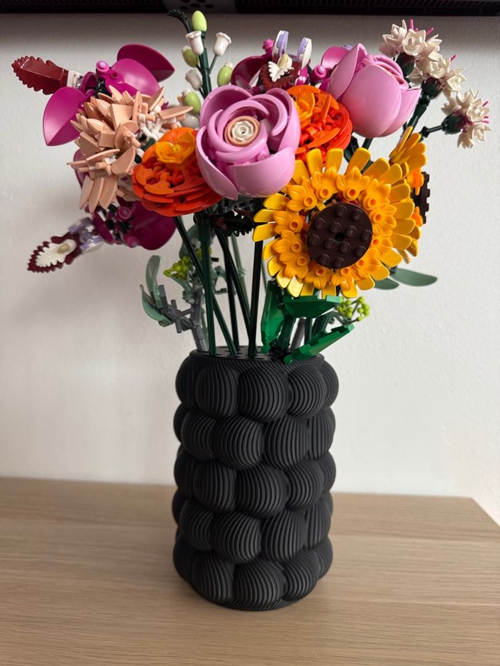 Vase fait en PLA impression 3D Vase idéal pour fleurs lego ou fleurs séchées (ne pas mettre d'eau, non étanche) avec support pour mettre les tiges lego (supports 26 trous) ⚠️⚠️⚠️les fleurs ne sont pas inclus, l'annonce est uniquement pour le vase (11) Dimensions: hauteur 16 cm Diametre bas: environ 11,5cm Blanc 12€ Noir 12€ Envoi soigné