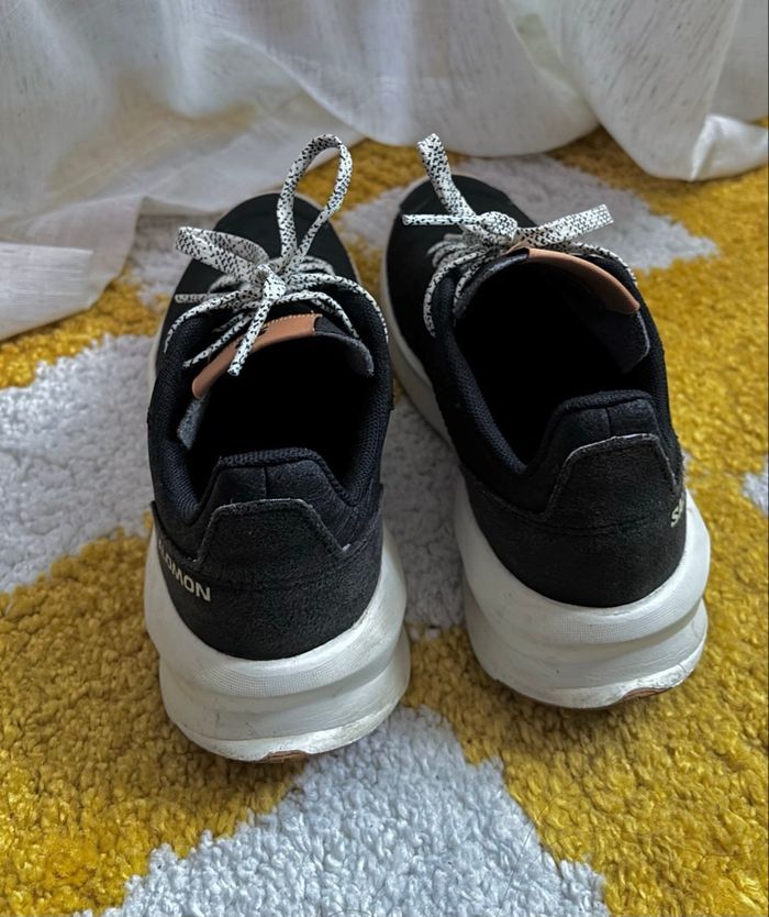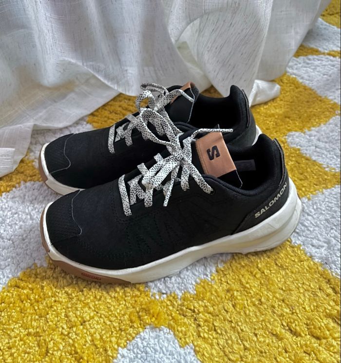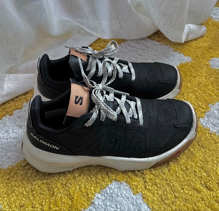 Baskets Salomon noires modèle Patrol. Très bon état, peu portées. Quelques traces d’usure au niveau de la semelle. Pointure 34.