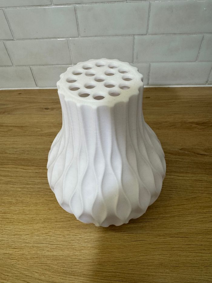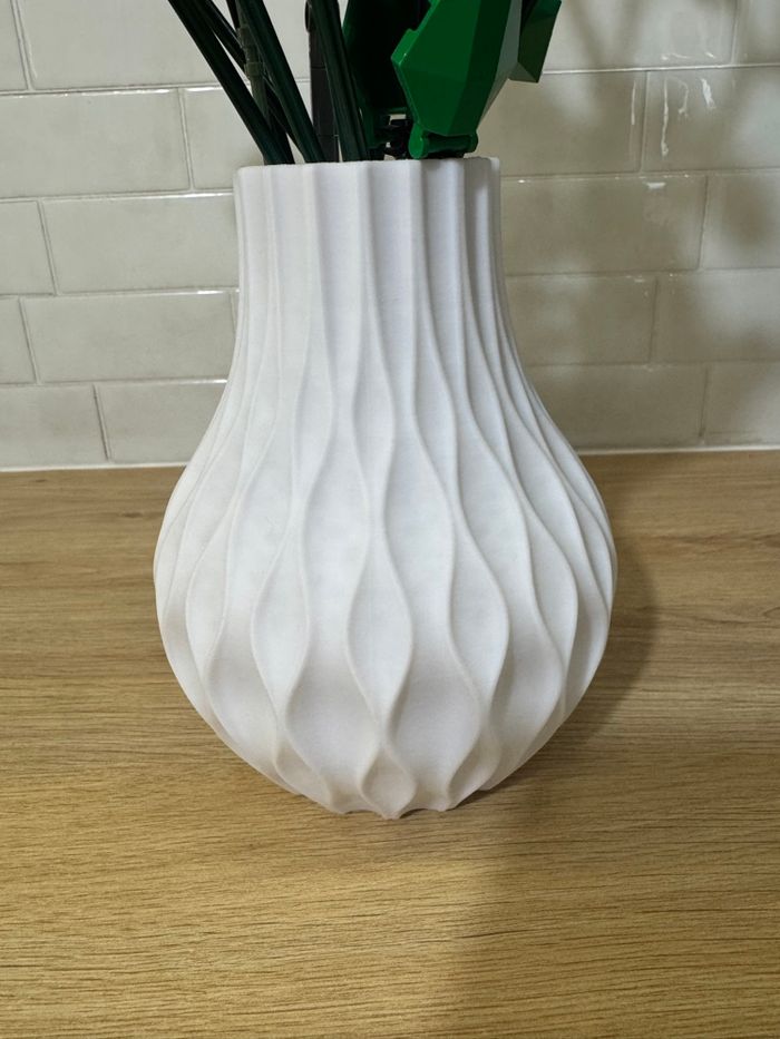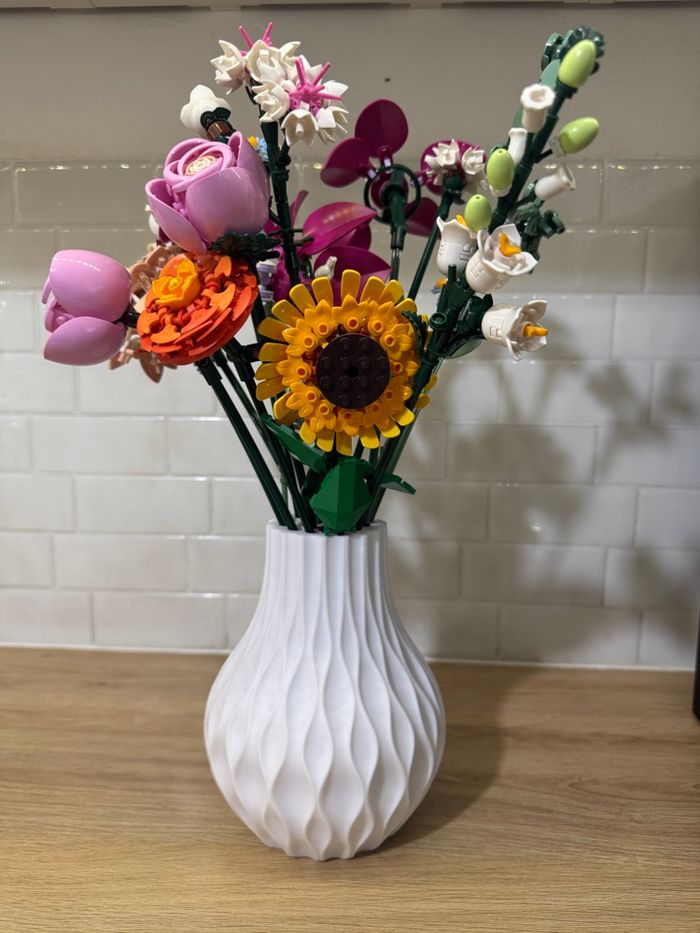 Vase fait en PLA impression 3D Vase idéal pour fleurs lego ou fleurs séchées (non étanche, ne pas mettre d'eau) avec support pour mettre les tiges lego (support 17 trous) ⚠️⚠️⚠️les fleurs ne sont pas inclus, l'annonce est uniquement pour le vase Dimensions: hauteur 17 cm Diamètre le + large au milieu: 13,3 cm Diametre haut: 6 cm Diametre bas: 8 cm (2) Couleurs dispo sur demande: Blanc ou noir 10€ Envoi soigné