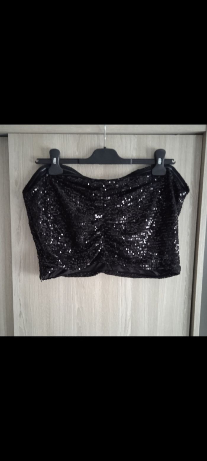 Bonjour je vends un magnifique haut bustier pailleté couleur noir parfait avec un jogging jambes larges et veste pour un style décontracté décalé et beau ou le pantalon à pinces couleur noir la jupe crayon avec fente couleur noir que je vends dans mon dressing pour un style distingué chic et beau également en soirée acheté 19.99 € n'hésitez pas à regarder mon dressing.