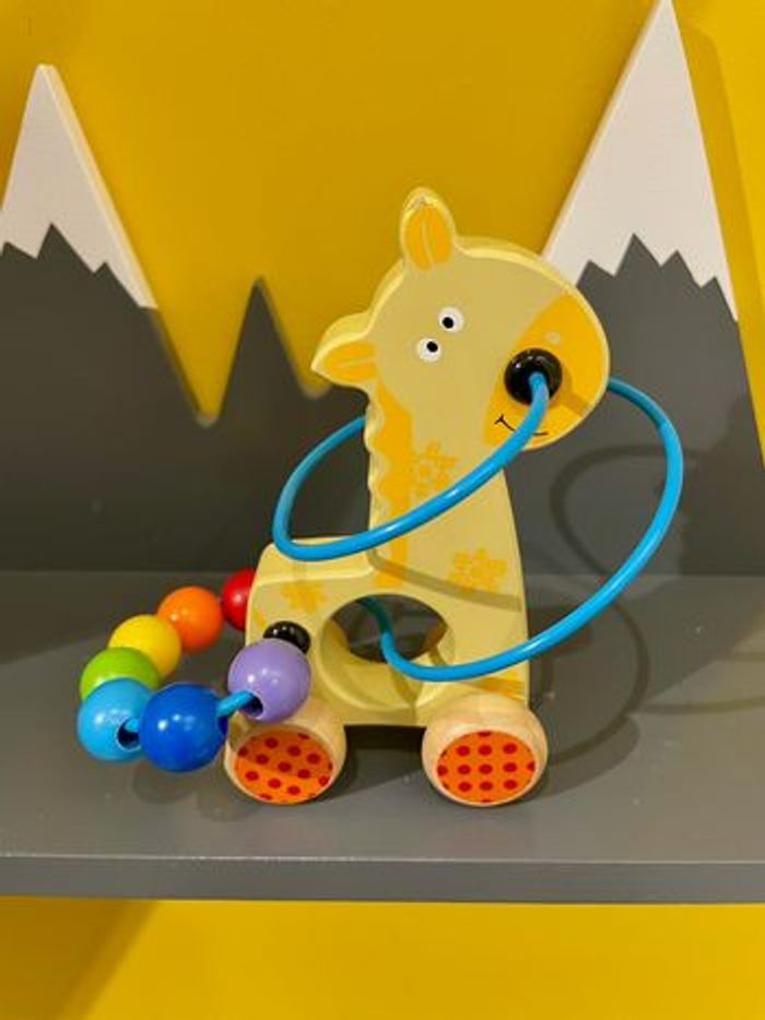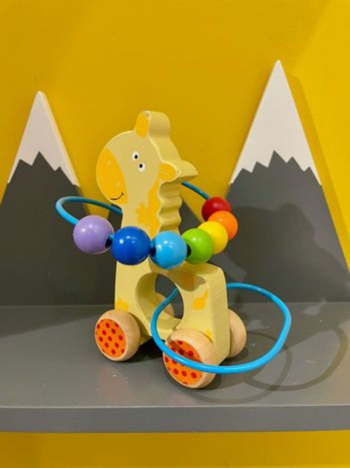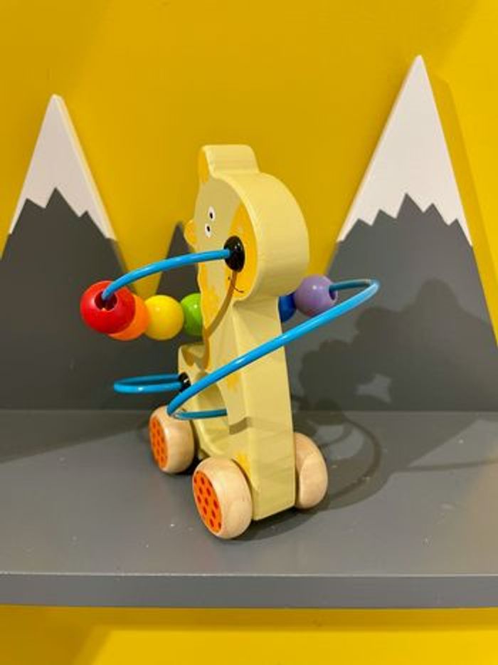 Cheval en bois sur roues avec circuit de perles boulier de motricité - photo numéro 4