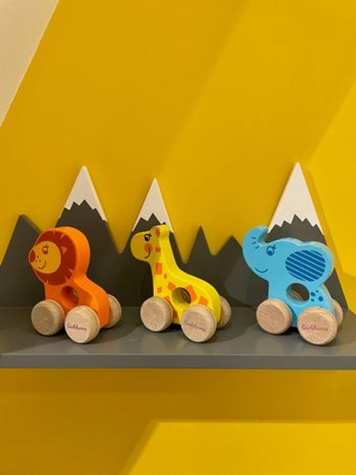Lot de 3 animaux de la savane en bois jouets à pousser Eichhorn 12 mois - photo numéro 1