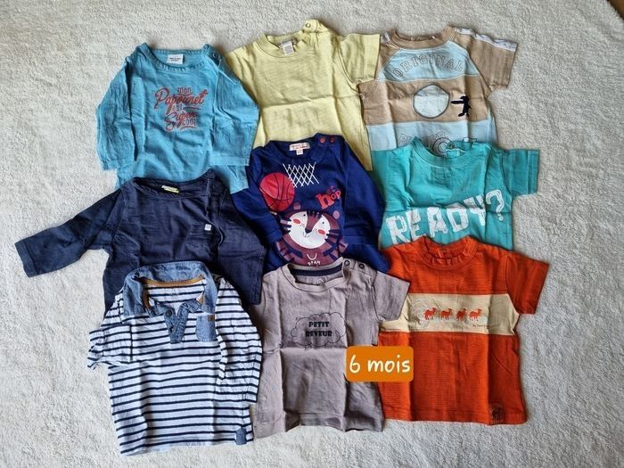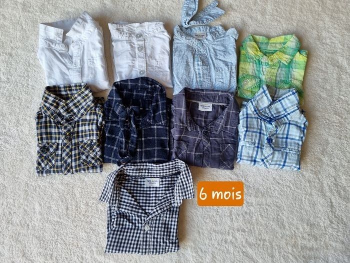 Lot complet de vêtements bébé taille 6 mois, idéal pour renouveler toute une garde-robe à petit prix. Le lot comprend : 👕 T-shirts manches courtes et longues 👖 Pantalons et joggings 🧥 Pulls et sweats 👔 Chemises Styles variés (quotidien, confortable, mignon), couleurs neutres et faciles à assortir. 🔹 Taille : 6 mois 🔹 État : bon à très bon état (quelques traces d’usure normales) 🔹 Maison non-fumeur Parfait pour bébé ou pour une future naissance 👶✨