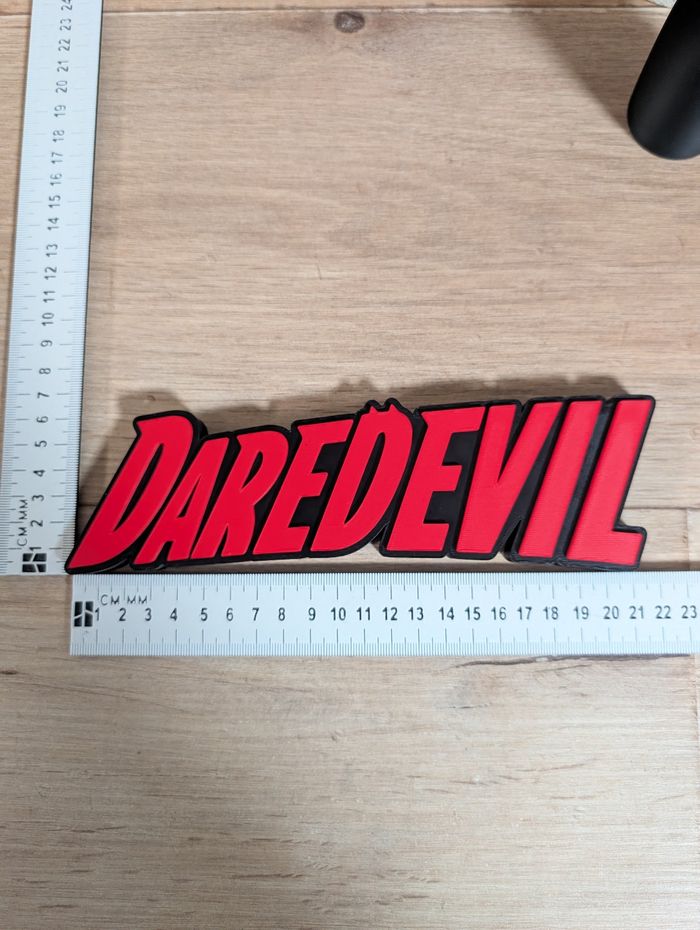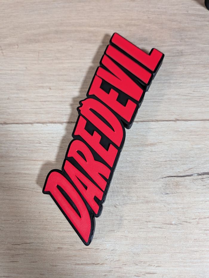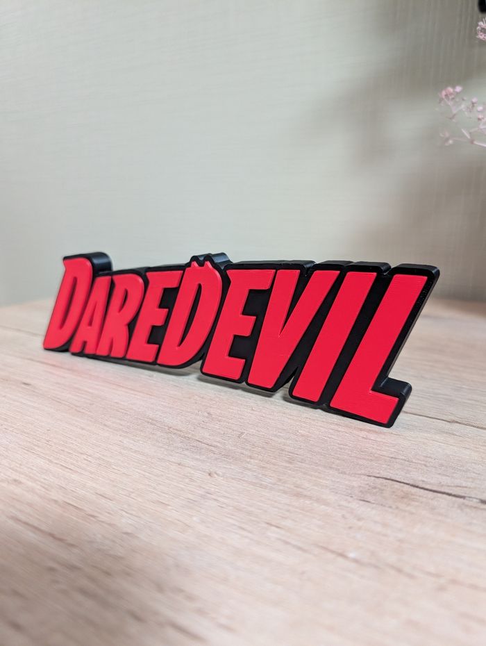 Logo à poser Matière plastique pla rigide Couleur noir et rouge Longueur 21cm x hauteur 7cm . . . . #daredevil #comics #manga #anime #marvel #collection #decoration #cadeaugeek